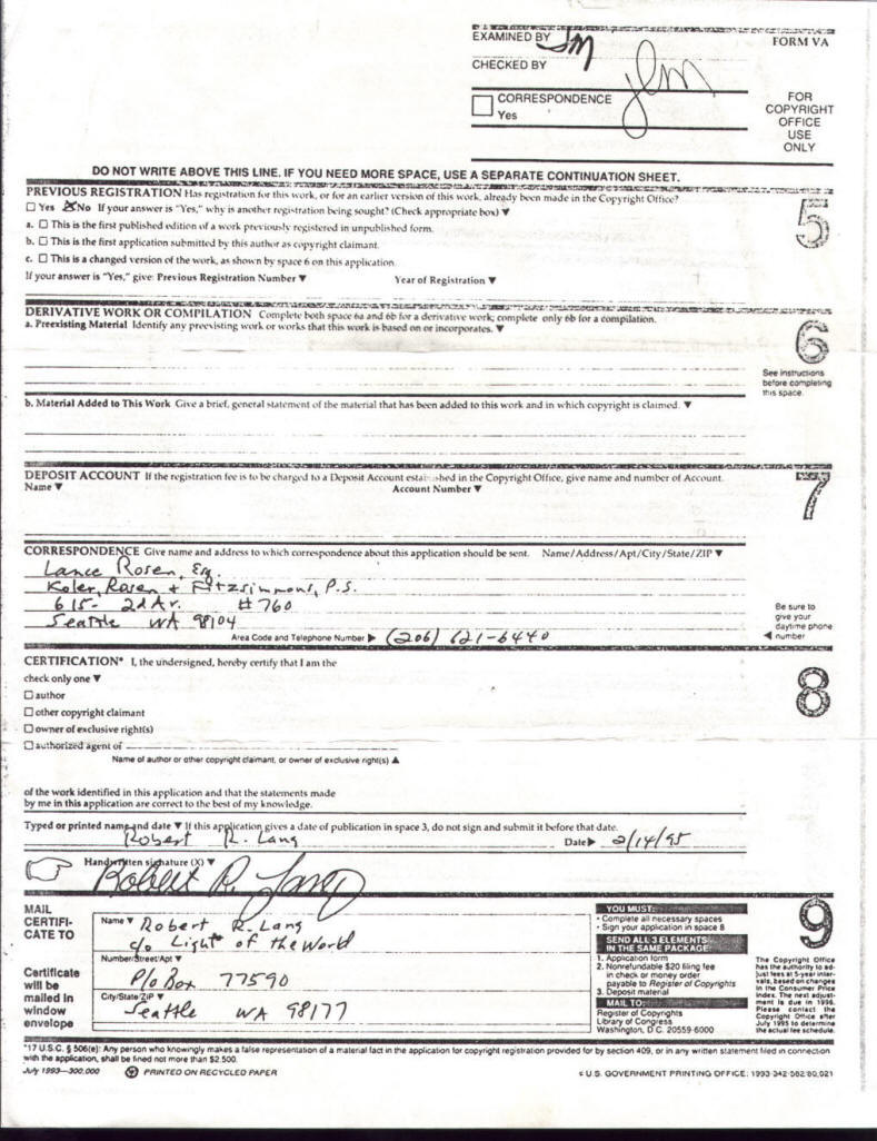 (206) 542-1041 or send E-Mail to: