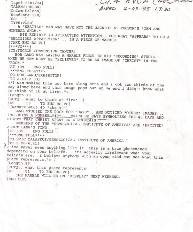 legend story photos media secular letters non-secular letters Tucson gem show certification For more information, please contact Robert Lang at (206) 542-1041 or send E-Mail to: lightoftheworldstone@gmail.com